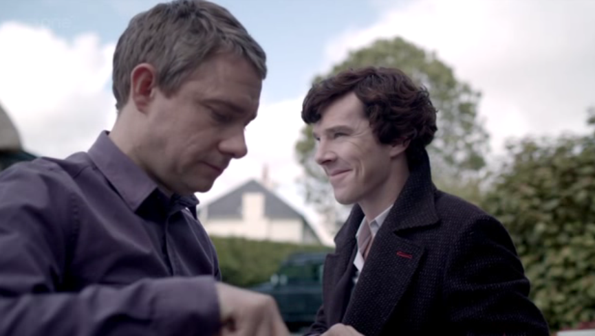 The real treat of this episode, much like the second episode of the first season, is…well…the bromance. There, I said it. I apologize. This story is far more interesting than The Blind Banker, but the crime isn’t really that compelling. We keep watching because we love seeing Sherlock and Watson play so perfectly off of each other. Like at the end when Watson realizes Sherlock wasn’t being thoughtful getting him that coffee the day before.